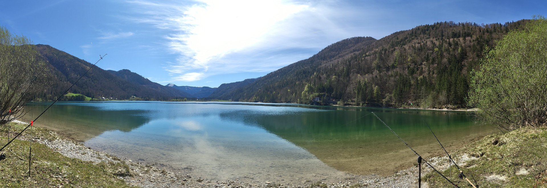 3 Angelruten, Befischung nur vom Ufer.